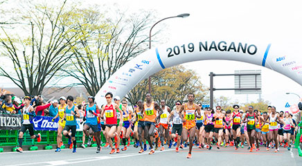 長野マラソンでは、頑張るランナーの想いに応えようと、オンラインマラソン大会を開催。参加賞Tシャツを着て一緒に走りましょう!