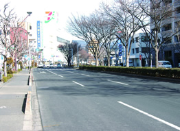 市内中心部・中央通りはゆるやかな直線の下り。大勢の応援が期待される区間