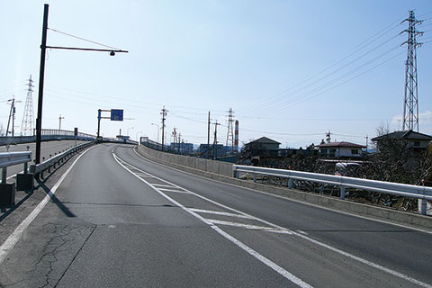 ホワイトリングを過ぎて真っすぐ走ると千曲川の堤防道路に。堤防を西へ1kmほど走って左折し、更埴橋を渡ったら千曲川右岸へ。