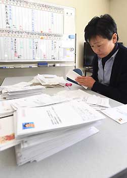 組織委によると、長野マラソンは、参加する約1万人のランナーのうち8割ほどがリピーター。長く愛される大会にしようと、第15回から毎回、走り終えたランナーを対象に、5年後の自分に宛てたメッセージを書いてもらい、組織委が保管している。第15回の時に寄せられたメッセージは579通。組織委は2月下旬から、書いた本人に向けて発送作業を続けてきた。