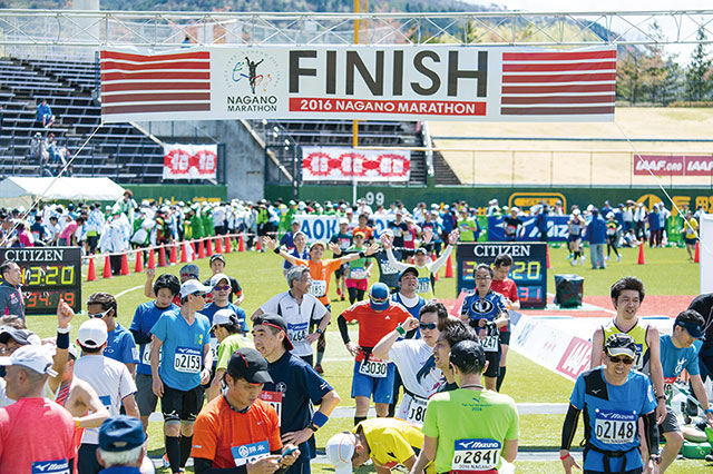 長野マラソンのコースは、1998年に長野冬季オリンピックが開催された主要会場を結んでいます。各会場周辺は周囲の見晴らしが良く、応援ポイントとしてもおすすめです!