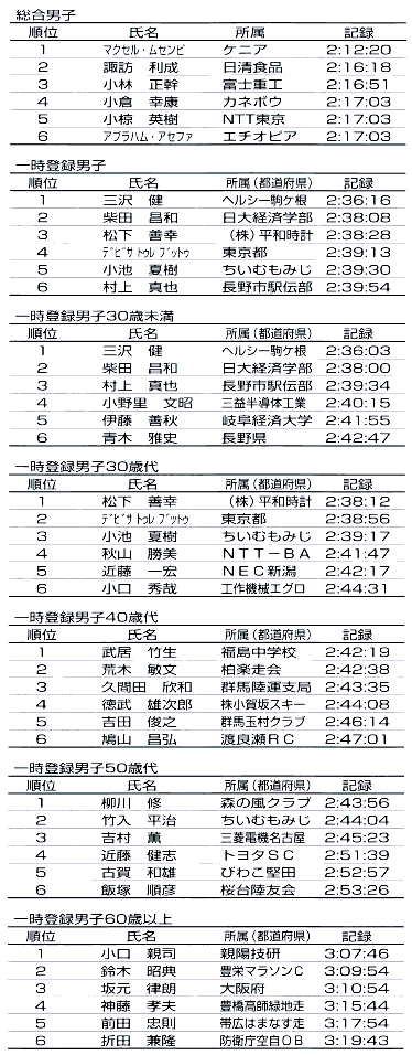 ※総合男女、一時登録男女の記録はグロスタイム(スタート号砲からのタイム)
